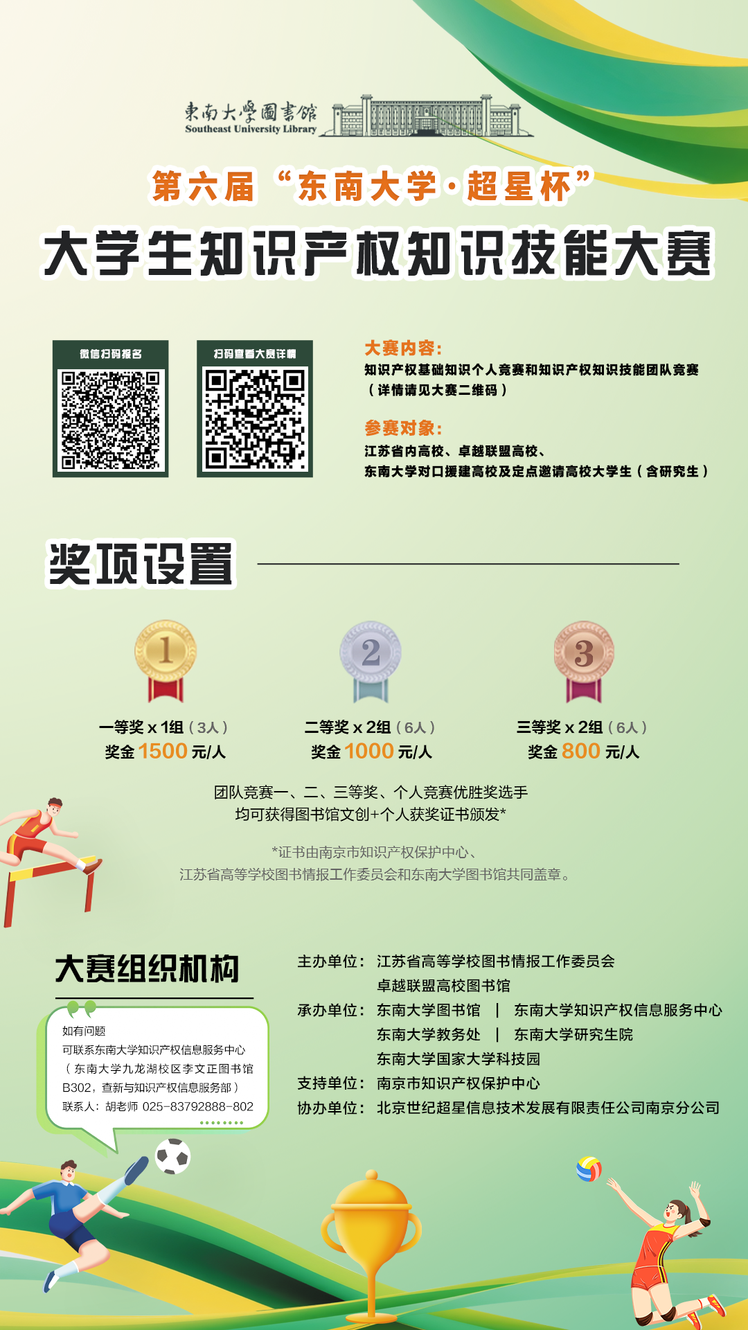 【4.26丨竞赛】第六届“东南大学·超星杯”大学生知识产权知识技能大赛